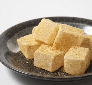 わらび粉を使用し、もちっとした食感でわらびの風味香るわらび餅です。癖のない上品な甘さが特徴です。きなこをかけておめしあがりください。